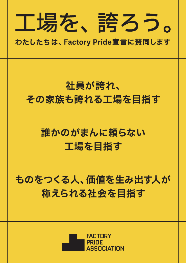 当社はこの想いに共感し、一般社団法人 Factory Pride Associationが掲げる「Factory Pride 宣言」に賛同いたします。